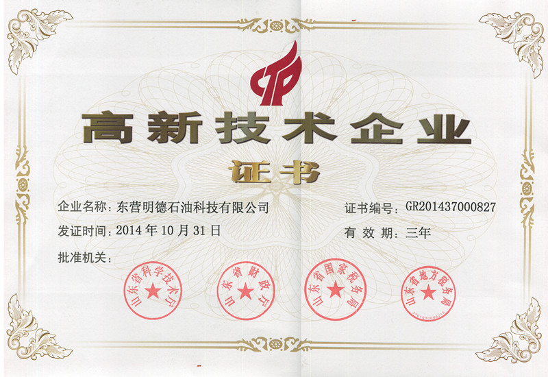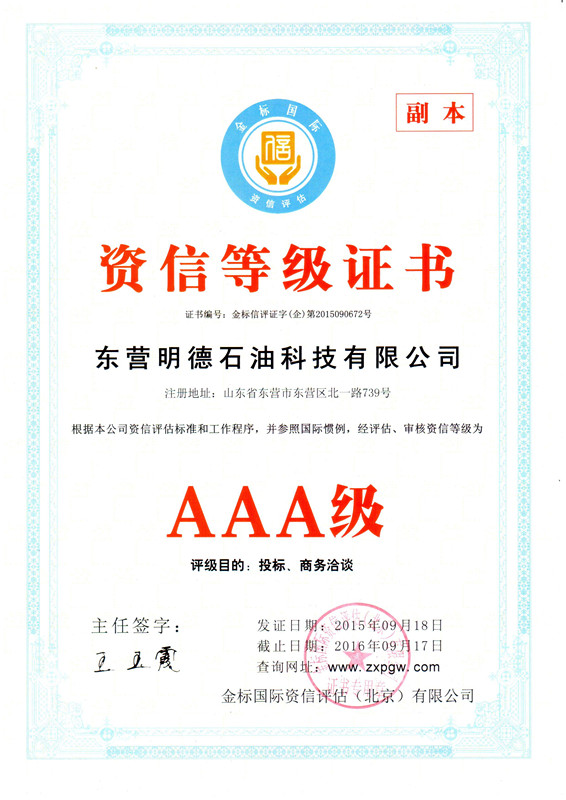 資質(zhì)榮譽(yù) 您現(xiàn)在的位置:東營明德石油科技有限公司 > 資質(zhì)榮譽(yù)